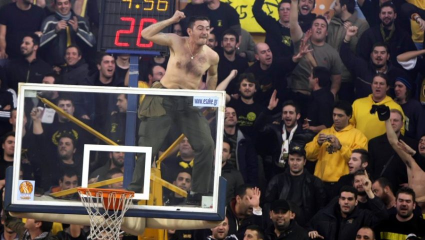 Βλέποντας ότι η (τότε) ΑΕΚ έσπαγε τα καλάθια, ένας οπαδός της παραλίγο να… μπει ο ίδιος καλάθι. Φερόμενος λες και είναι το πιο φυσιολογικό πράγμα στον κόσμο, ο παλίκαρος αποφάσισε να κάνει τον μαέστρο της υπόλοιπης εξέδρας πάνω από την μπασκέτα.