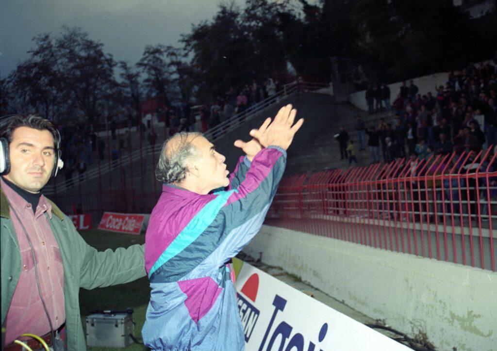 Ήταν μάλιστα τόσο έξαλλος και εξαγριωμένος από το γεγονός ότι η κερκίδα συνέχιζε να τον πικάρει, που στο 80’ του αγώνα αποφάσισε να… φύγει από τον πάγκο. Πήγε να το κάνει μάλιστα διασχίζοντας το γήπεδο (με τον Πέτρο Μίχο να καταφέρνει με δυσκολία να τον συγκρατήσει).