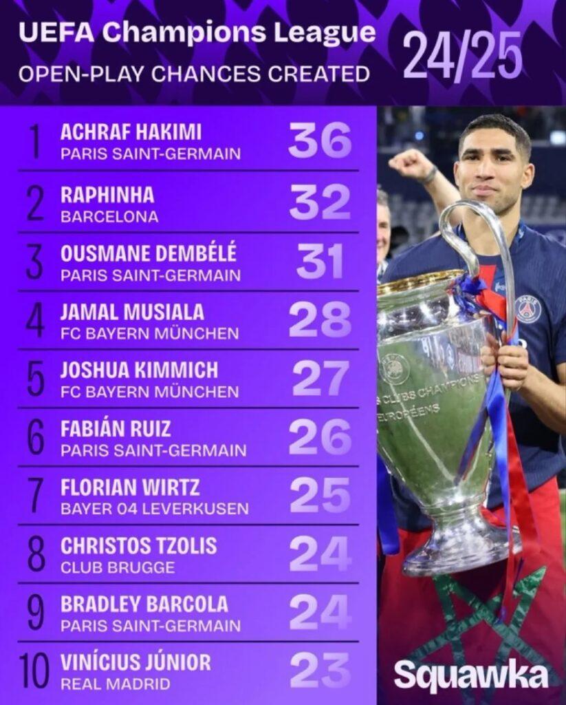 Και ειδικά στο κομμάτι της Νο1 διασυλλογικής διοργάνωσης στην Ευρώπη, ο Χρήστος Τζόλης δικαιούται να καμαρώνει και για ακόμα μια διάκριση, επί προσωπικού αυτή τη φορά. Ο 23χρονος ποδοσφαιριστής ήταν 8ος στη λίστα με τη δημιουργία περισσότερων ευκαιριών σε κανονική ροή αγώνα (24), δηλαδή όχι από στατικές φάσεις. Άφησε έτσι πίσω του παίκτες όπως οι Μπαρκολά και Βινίσιους, ενώ αν η Κλαμπ Μπριζ είχε προχωρήσει πιο μακριά από τους «16» (αποκλείστηκε από την Άστον Βίλα) θα είχε δεδομένα τερματίσει πιο ψηλά στη σχετική κατάταξη.