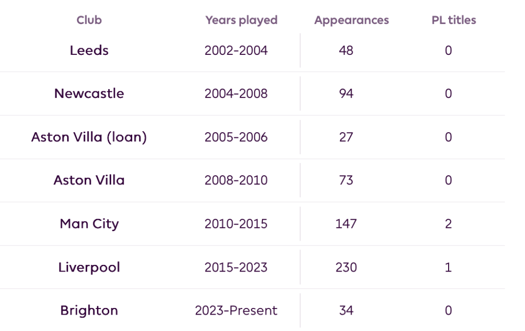 Στο τελευταίο κομμάτι αυτής της πραγματικά απίστευτης διαδρομής, με την Μπράιτον, ο Μίλνερ έχει σκοράρει μία φορά [έχασε το μεγαλύτερο μέρος του 2025-26 λόγω τραυματισμού] ανεβάζοντας τον λογαριασμό του στα 56 γκολ, ενώ έχει και 90 ασίστ όντας το Νο10 ever της σχετικής λίστας. Για να το καταφέρει αυτό έχει περάσει από πολλές θέσεις, μεσοεπιθετικός, κεντρικό χαφ, ακόμα και αριστερό μπακ ήταν στην Λίβερπουλ.