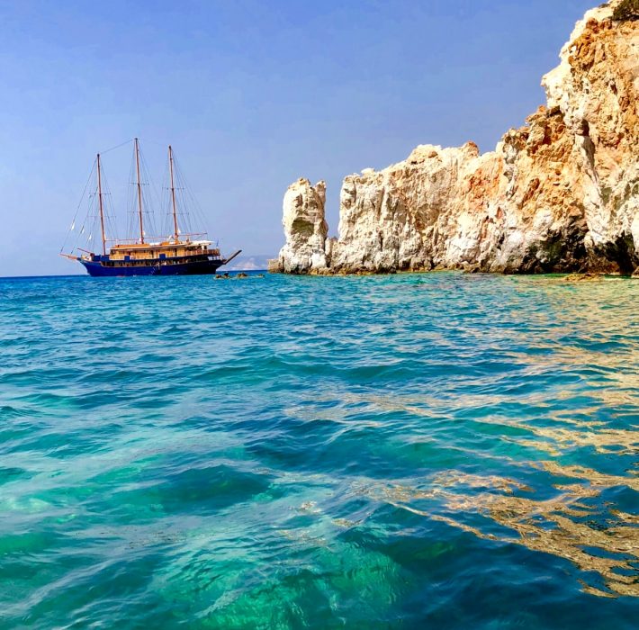 Επιβλητικά ηφαιστειακά πετρώματα, πεντακάθαρα νερά και νεογνά φώκιας Μονάχους-Μονάχους είναι μόλις μερικά από τα χαρακτηριστικά που κάνουν το νησί αυτό τόσο μοναδικό. Κατά την ξενάγηση στα νερά της, οι ντόπιοι θα σου μιλήσουν και για τα δύο λατομεία της.