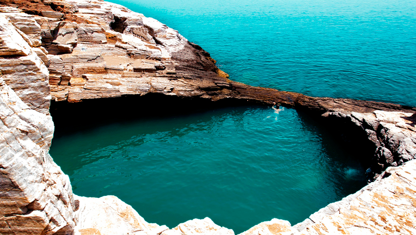 Πρόκειται για το φυσικό «διαμάντι» της Αστρίδας Θάσου που κυριολεκτικά φωλιάζει ανάμεσα στους πελώριους βράχους, δίπλα ακριβώς από την ακροθαλασσιά. Το βάθος της; Περίπου 3,5 μέτρα.