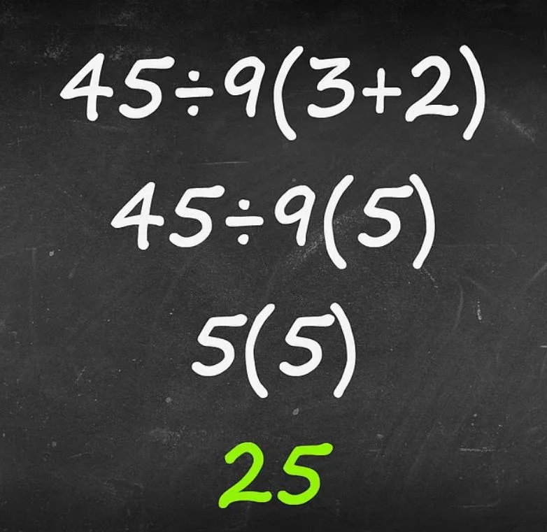 Σε κάθε περίπτωση, η σωστή σειρά είναι να γίνει πρώτα η διαίρεση που δίνει αποτέλεσμα 5. Επομένως, στο τέλος μένει το 5×5, άρα 25. Το οποίο, το 25 δηλαδή, είναι και η σωστή απάντηση σε αυτόν τον μαθηματικό γρίφο.