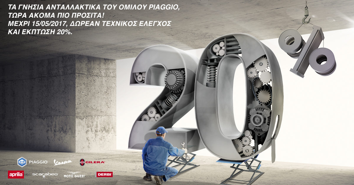 Η προσφορά ισχύει μέχρι 15.05.2017 και αφορά όλους τους κατόχους δικύκλων του Ομίλου Piaggio (Aprilia, Scarabeo, Piaggio, Vespa, Gilera, Moto Guzzi, Derbi), που τα οχήματά τους έχουν ταξινομηθεί μέχρι την 31.12.2014.