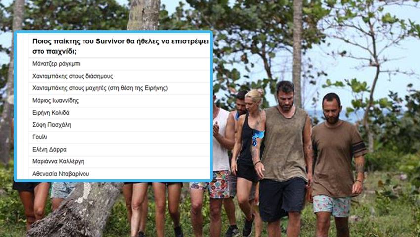 Αν μπορούσατε να επιλέξετε εσείς έναν απ’ τους παίκτες που έχουν φύγει απ΄ το Survivor για να επιστρέψει στο παιχνίδι, ποιος θα ήταν αυτός;