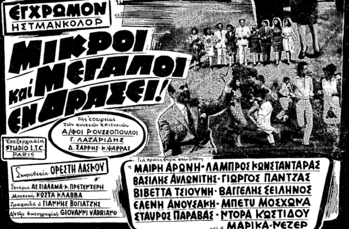 Βρισκόμαστε στο 1963 και οι πρωταγωνιστές της ταινίας «Μικροί και μεγάλοι εν δράσει» ετοιμάζονται για την πρώτη μέρα των γυρισμάτων. Από κοινού, μαζί με παραγωγή και σκηνοθέτη και το υπόλοιπο συνεργείο, έχουν αποφασίσει ότι αυστηρώς στις 9 το πρωί θα πρέπει να είναι όλοι εκεί. Και όντως από τις 8.30 τόσο ο Λάμπρος Κωνσταντάρας όσο και ο Βασίλης Αυλωνίτης αποδεικνύονται παραπάνω από κύριοι στο ραντεβού τους.
