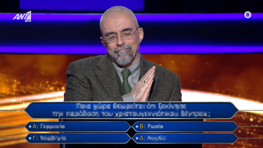 Η ερώτηση για τις 300.000 ευρώ στον εκατομμυριούχο. #ekatommyriouxos pic.twitter.com/LeeMrD8Jad
