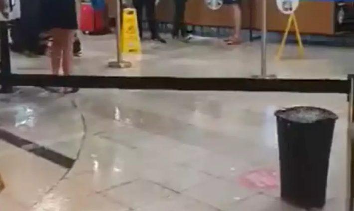 Απόκοσμες εικόνες με εργαζομένους του αεροδρομίου «Διαγόρας» της Ρόδου να προσπαθούν να συγκρατήσουν τα νερά που έσταζαν στον πλήρως ανακαινισμένο αερολιμένα με …κουβάδες και σφουγγαρίστρες.