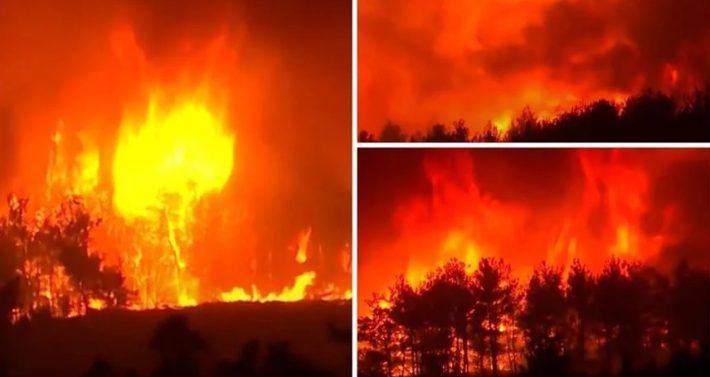 Οι επίγειες δυνάμεις της πυροσβεστικής, που αποτελούνται τόσο από Έλληνες όσο και από ξένους πυροσβέστες δίνουν πολύ μεγάλες μάχες, ωστόσο οι φλόγες είναι ανεξέλεγκτες.
