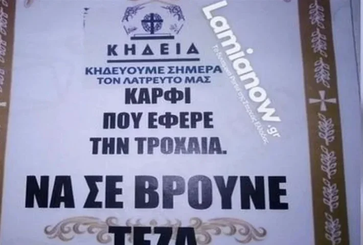 Ένα αναμφίβολα πρωτοφανές περιστατικό συνέβη στη Λαμία όταν ένας εξαγριωμένος κάτοικος γέμισε τον τόπο κηδειόχαρτα με τα οποία έστελνε μια μακάβρια «ευχή» σε έναν άλλoν…