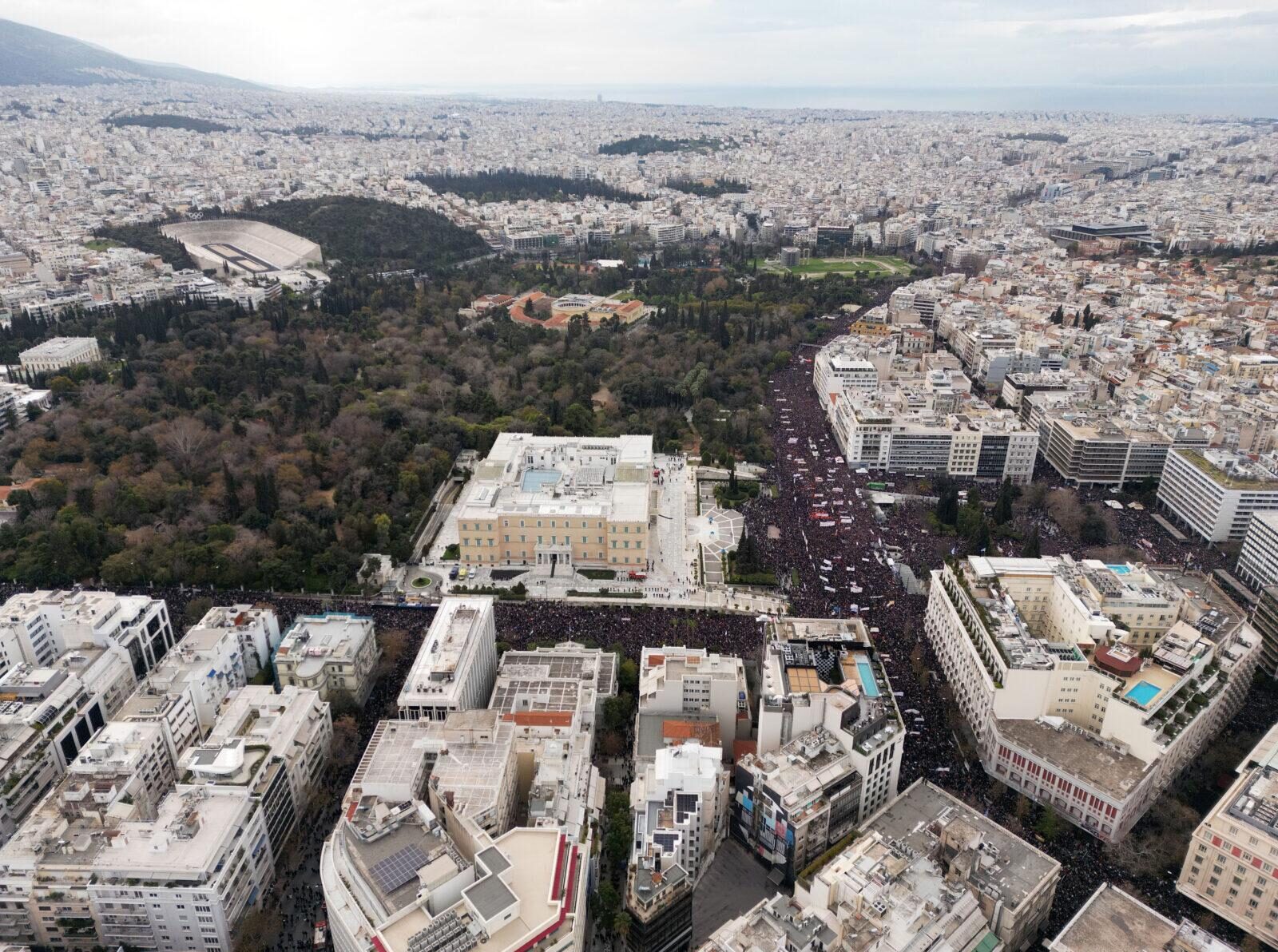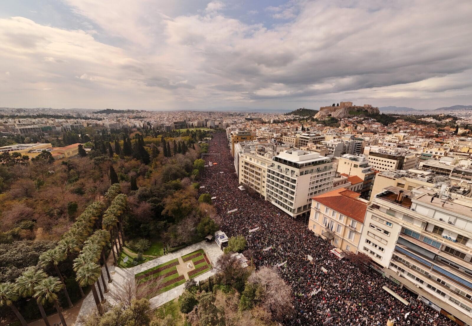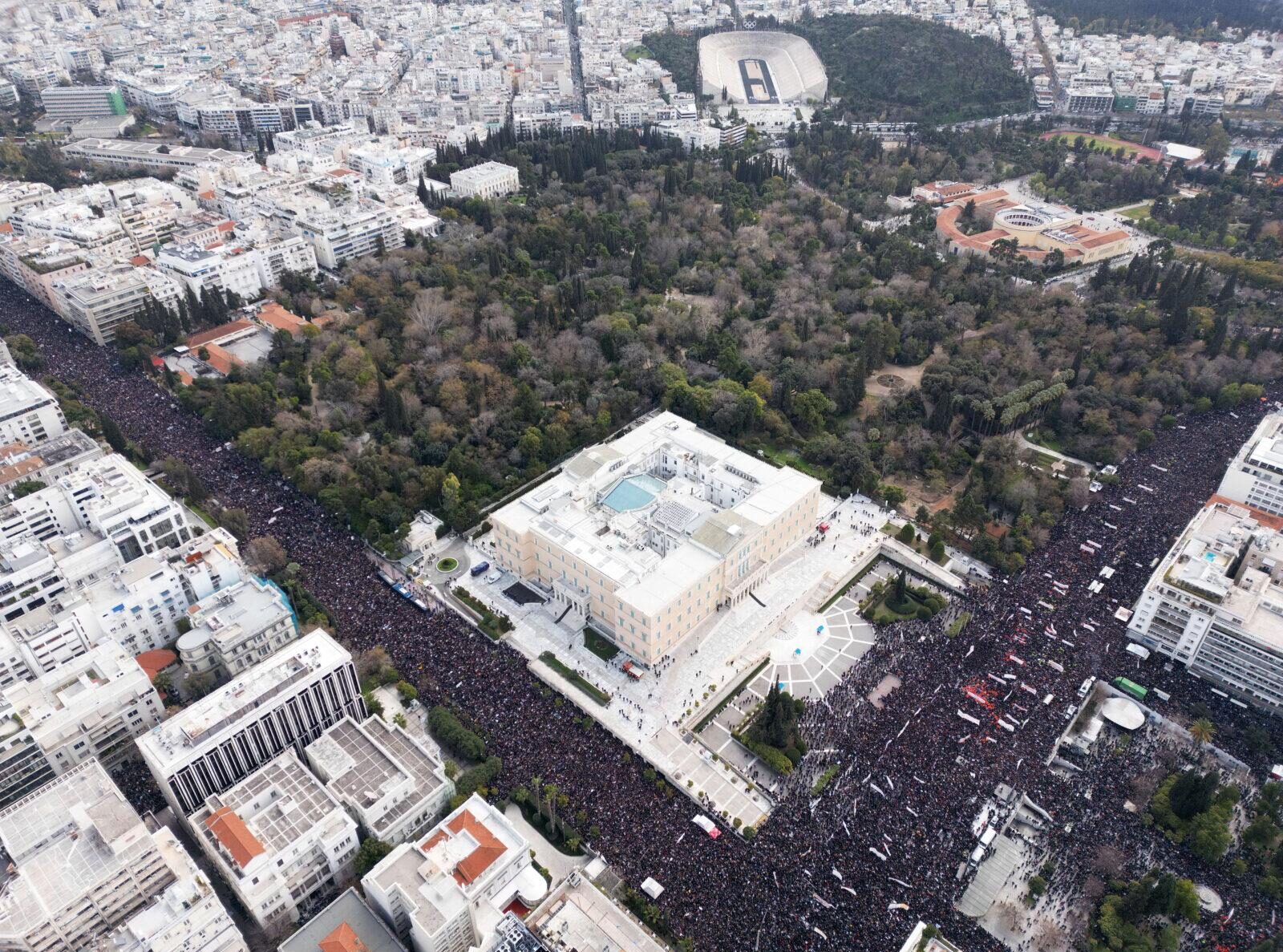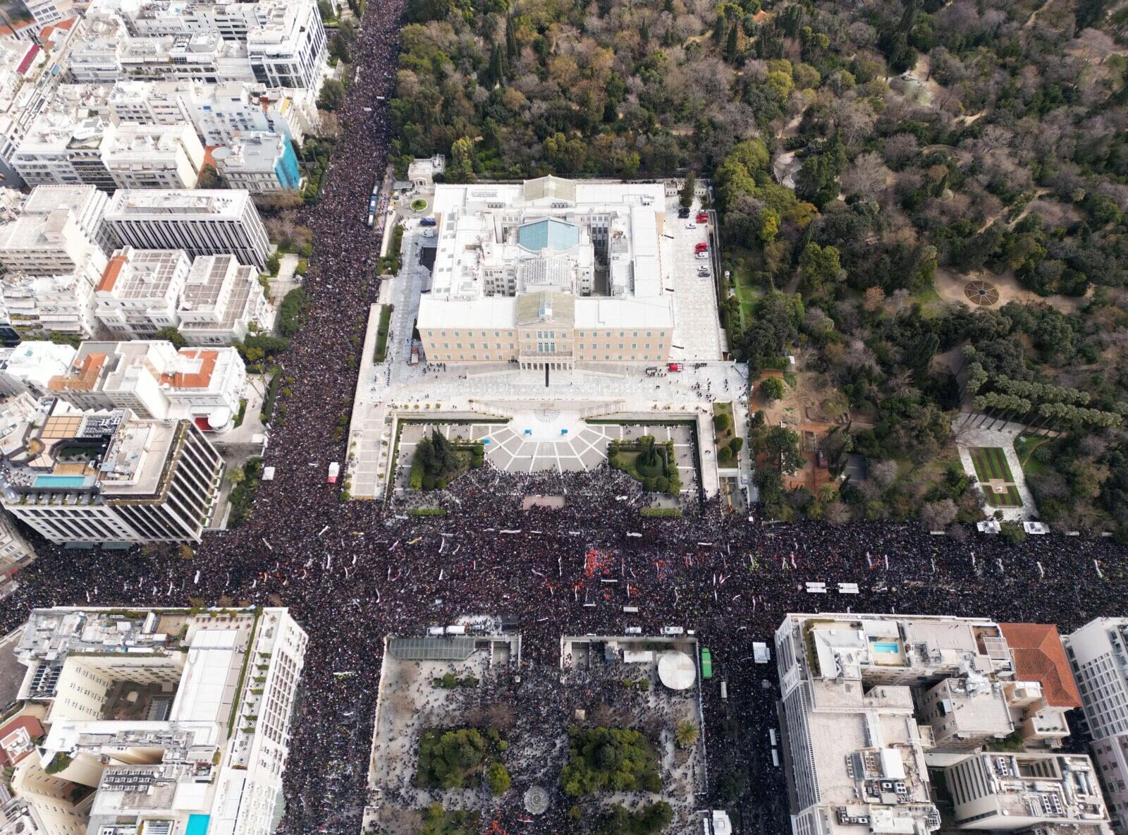 Δύο χρόνια μετά το έγκλημα στα Τέμπη που συγκλόνισε το πανελλήνιο, η χώρα θρηνεί τους 57 νεκρούς της και απαιτεί δικαιοσύνη. Από νωρίς το πρωί, εκατοντάδες χιλιάδες πολίτες βγήκαν στους δρόμους, πλημμυρίζοντας το κέντρο της Αθήνας σε μια πρωτοφανή συγκέντρωση. Οι εικόνες που ακολουθούν αποτυπώνουν το μέγεθος της κινητοποίησης και την αποφασιστικότητα του κόσμου να μη μείνει σιωπηλός.