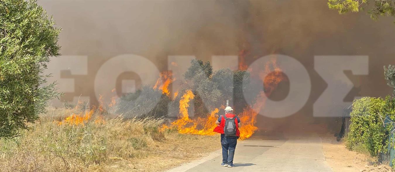 Τουλάχιστον 10 σπίτια έχουν υποστεί ζημιές από τη φωτιά, με το 112 να έχει στείλει μήνυμα για εκκένωση των οικισμών Αγία Κυριακή, Έτος Στέκο και Ήμερος Πεύκο.