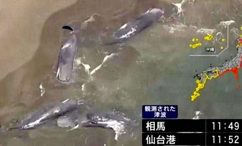 Την ίδια ώρα, φάλαινες εντοπίστηκαν ξεβρασμένες στην ακτογραμμή της πόλης Tateyama, στην περιοχή Τσίμπα, προκαλώντας προβληματισμό στους επιστήμονες και τις τοπικές αρχές.