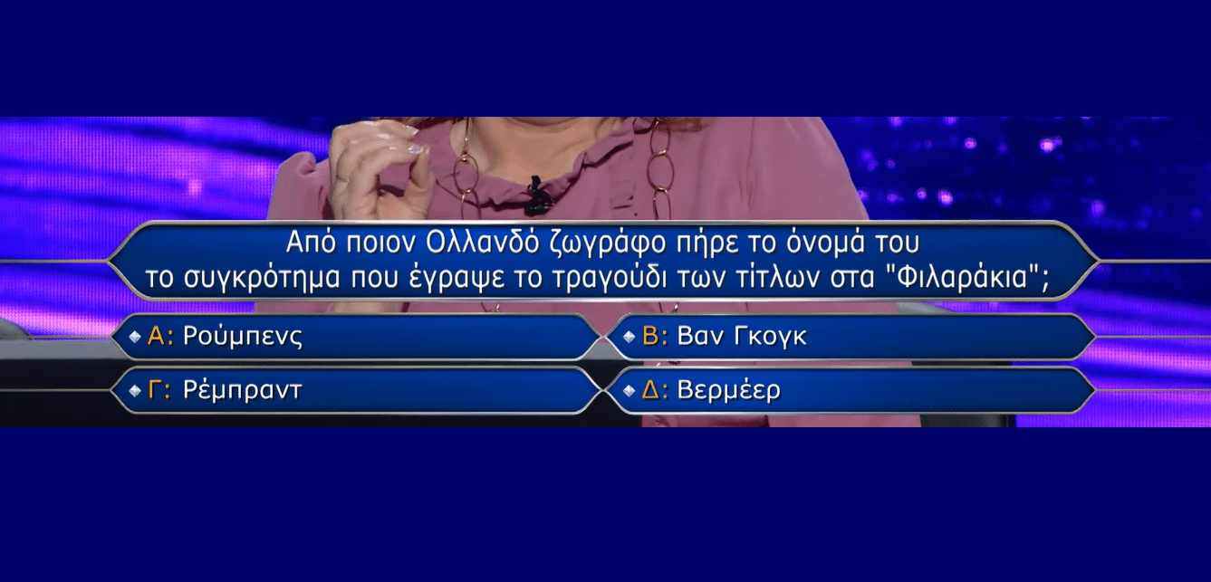 Στη συνέχεια, σας περιμένει ένα κουίζ αφιερωμένο στις πιο δύσκολες στιγμές του «Ποιος θέλει να γίνει εκατομμυριούχος;» των τελευταίων μηνών. Θα θυμηθούμε περιπτώσεις όπου οι ερωτήσεις ήταν τόσο δύσκολες ή έγιναν τόσο περίπλοκες που οι παίκτες είτε απάντησαν λάθος, είτε προτίμησαν να αποχωρήσουν.