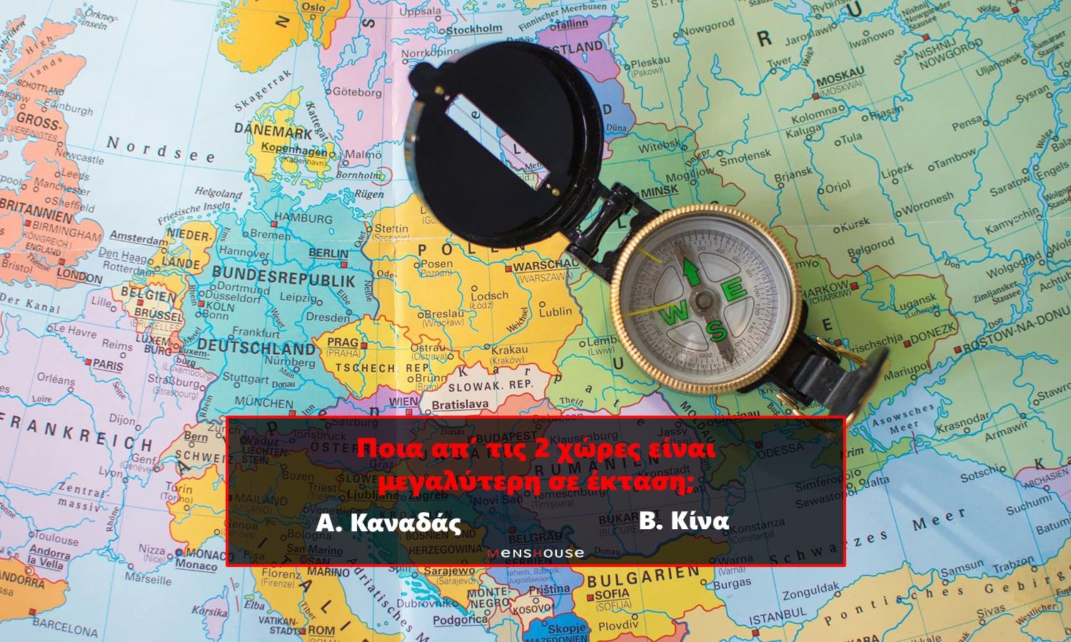 Σου δίνουμε 10 ζευγάρια χωρών. Εσύ πρέπει να βρεις ποια από τις δύο έχει μεγαλύτερη έκταση. Όχι πληθυσμό, όχι φήμη, όχι πολιτισμό, όχι πλούτο. Έκταση. Πόσο πιο απλή ερώτηση. Πόσο καλά θυμάσαι τη γεωγραφία σου; Κάνε το τεστ και θα εκπλαγείς με το πόσες ερωτήσεις από εκείνες που θα ορκιζόσουν ότι γνωρίζεις, θα κάνεις λάθος!