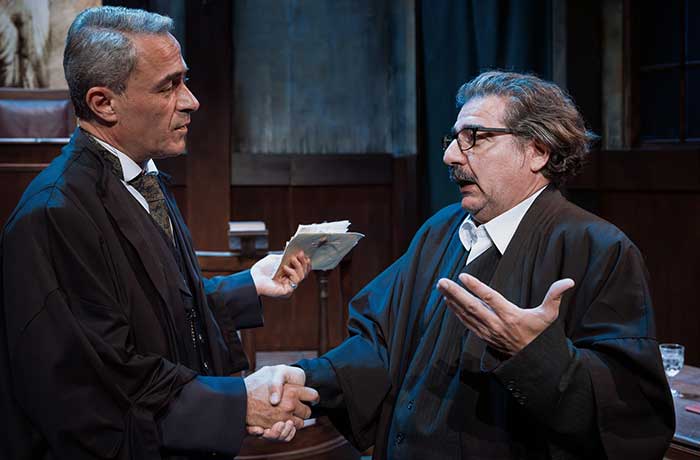 Το εμβληματικό έργο μεταφέρεται σκηνοθετικά από τον Νικορέστη Χανιωτάκη, που σέβεται απόλυτα το αρχικό κείμενο, δίνοντας όμως και τη δικιά του ματιά στα πράγματα, όπου υπάρχει περιθώριο. Ο Γιάννης Βούρος και ο Κώστας Κόκλας, στους ρόλους των δικηγόρων υπεράσπισης, ερμηνεύουν, ως δικηγόροι υπεράσπισης, ενώνοντας κύρος, χιούμορ και λεπτή ειρωνεία, ενώ μεγάλο ενδιαφέρον παρουσιάζουν και οι δεύτεροι ρόλοι (Γιάννης Δρακόπουλος, Νίκη Παλληκαράκη, Μελίνα Βαμβακά, Δημήτρης Καραμπέτσης, Βαρβάρα Μακράκη).