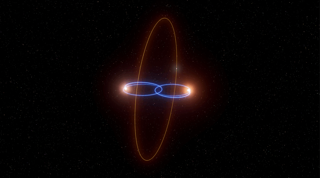 H NASA ανακοίνωσε ότι ανακάλυψε ένα από τα πιο παράξενα πλανητικά συστήματα που έχει εντοπιστεί ποτέ στο σύμπαν. Το «2M1510» αποτελείται από δύο ευθυγραμμισμένους καφέ νάνους (brown dwarfs) κι ανάμεσα τους έναν (πιθανότατα) πλανήτη με τεράστια ελλειπτική τροχεία.