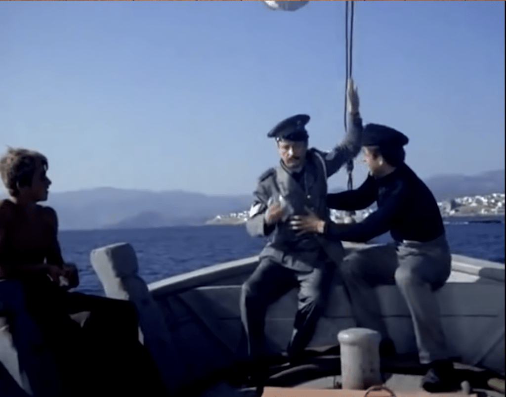 Πρόκειται για λάθος που έχει πολλάκις επαναληφθεί σε ελληνικές ταινίες και σειρές. Στη συγκεκριμένη σκηνή με τον αστυνομικό στη βάρκα… μεσοπέλαγα, το μικρόφωνο είναι κάτι περισσότερο από εμφανές.