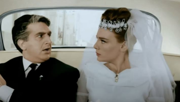Το καλύτερο όμως είναι απ’ το «Η δε γυνή να φοβήται τον άνδρα» στη γνωστή σκηνή με το ταξί που ακούστηκε το θρυλικό «Σκασμός εσύ Αντωνάκη μου». Η σκηνή προφανώς ολοκληρώθηκε σε δυο γυρίσματα με διαφορετικό αυτοκίνητο. Έτσι, ενώ ο Αντωνάκης φεύγει από την εκκλησία με το μαύρο αμάξι με πινακίδα 115345, μετά από λίγα δευτερόλεπτα τον βλέπουμε να φτάνει σπίτι με την Ελενίτσα του, με άλλο αμάξι. Δείτε τις πινακίδες τους και τις διαφορές.