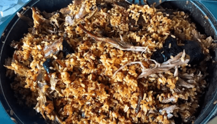 Αφού πάρουν μια βράση τα εντόσθια, στη συνέχεια ψιλοκόβονται και τσιγαρίζονται σε αντικολλητικό τηγάνι μαζί με κρεμμύδια. Προσθέτουμε αλατοπίπερο και επιπλέον πελτέ ντομάτας μέχρι την ώρα που θα μπει στο σκεύος και το ρύζι, μαζί με νερό ώστε να γίνει σύβραση.