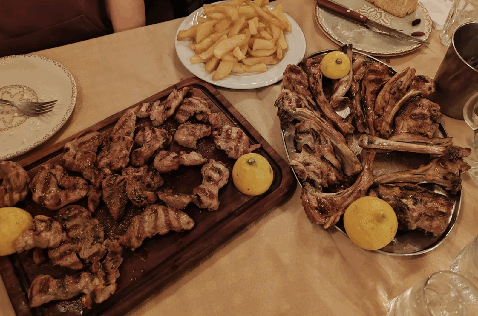 Ναι, το κρέας, διαλεγμένο με τη μέγιστη φροντίδα από τοπικούς παραγωγούς, είναι ο σταρ της υπόθεσης, ο πρωταγωνιστής στο μαγαζί. Αλλά δεν είναι μόνο αυτό. Οι τηγανητές πατάτες είναι όνειρο, τα χόρτα το ίδιο. Τα τυριά είναι σπέσιαλ, όπως η γαλομυζήθρα από την Κρήτη και το γαλοτύρι από τα Ζαγοροχώρια, ενώ εκτός μενού, αλλά πολύ συχνά, παίζουν και… άπαιχτες πίτες. Και για φινάλε, φοβερό γλυκάκι, κέρασμα, άγλυκο αλλά ταμάμ για να φύγει η «κρεατίλα»!