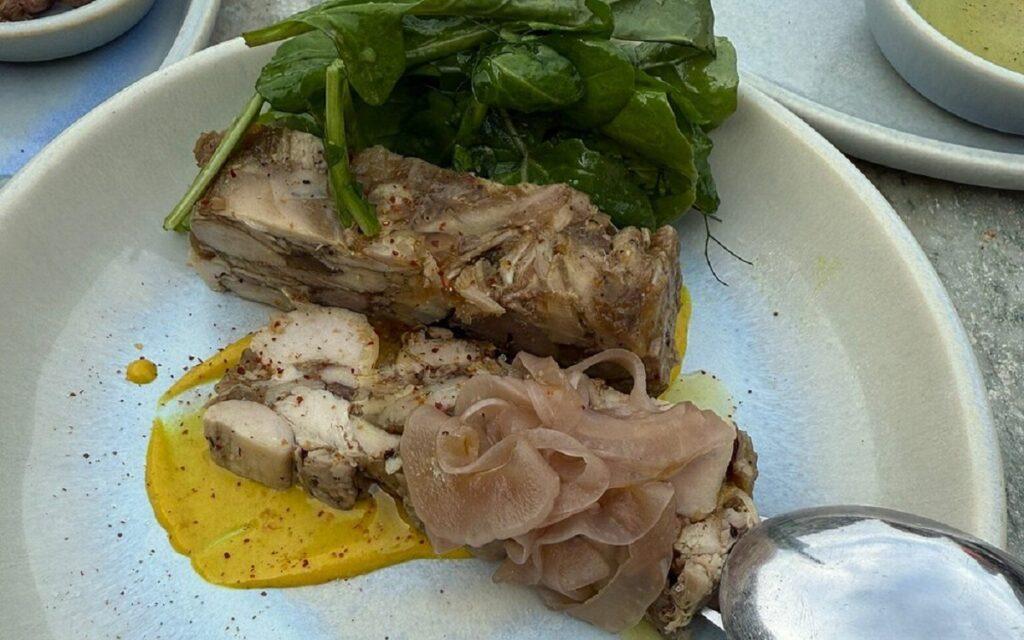Το focus πέφτει στην ελληνική κουζίνα, μιξάροντας το σύγχρονο με την παράδοση. Στόχος ήταν εξ αρχής η ανάδειξη των προϊόντων της Σίφνου, όπως και η συνεχής δημιουργικότητα – το μενού εναλλάσσεται καθημερινά. Γι’ αυτό και δεν έχει τόσο νόημα να σταθούμε σε συγκεκριμένα πιάτα. Γιατί πολύ απλά μπορεί σαν φτάσει η μέρα να πας εκεί, τυχερέ αναγνώστη, να μην βρεις κάτι που θα σου πούμε στις επιλογές. Με εξαίρεση κάποια απόλυτα must, όπως το φανταστικό παγωτό από ψωμί που κλείνει γλυκά και αποθεωτικά αυτήν την μοναδική έξοδο για φαγητό.