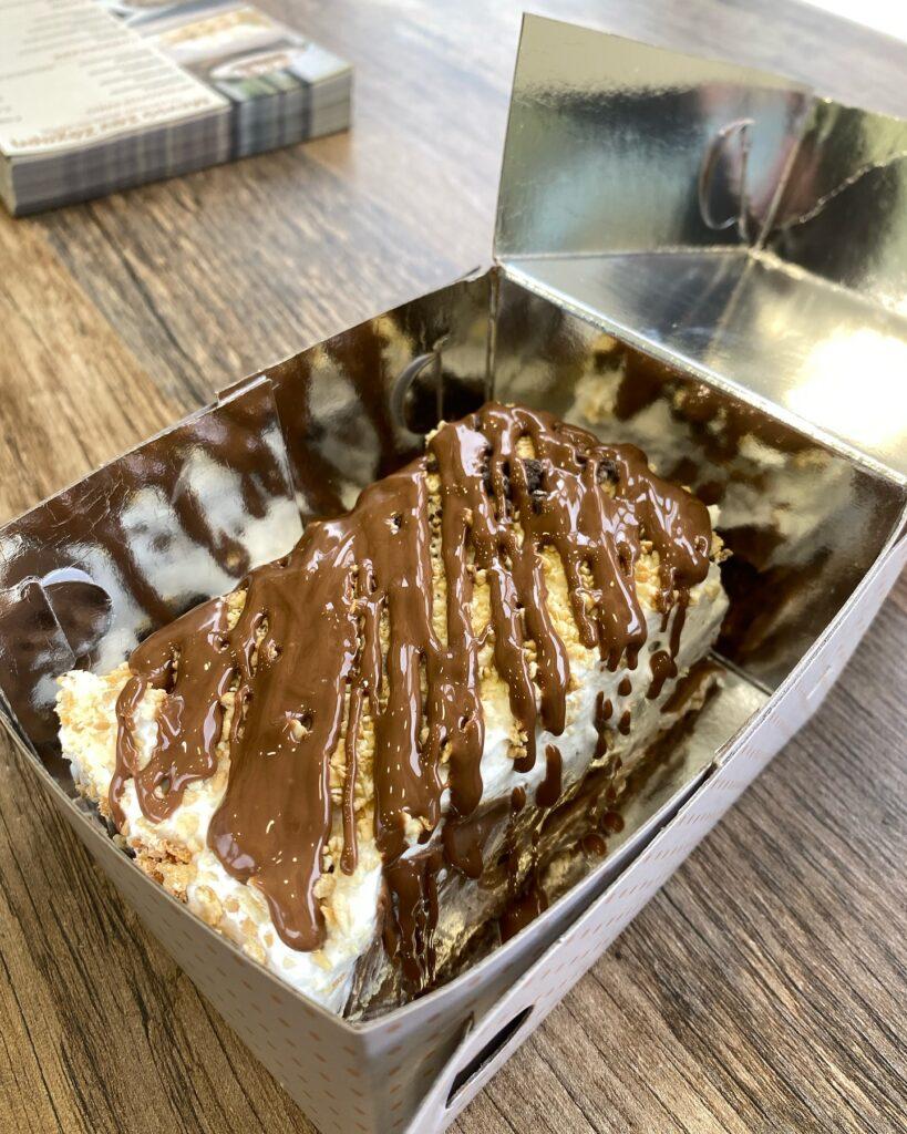 Το επικό αυτό μπισκοτογλυκό βγαίνει σε 4 γεύσεις: Σοκολάτα-βανίλια, σοκολάτα, φράουλα, καραμέλα. Η μία καλύτερη από την άλλη, ανάλογα τα γούστα σου. Αν και το πιθανότερο είναι πως δεν θα ησυχάσεις αν δεν δοκιμάσεις τα πάντα. Περνώντας μετά στις υπόλοιπες σπεσιαλιτέ του μαγαζιού, από cheesecake ως παγωτό μηχανής και τιραμισού.