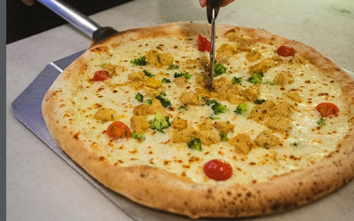 Foghorn: Με κρέμα παρμεζάνας με γάλα καρύδας, φρέσκια μοτσαρέλα, κύβους από ψητό κοτόπουλο, μαριναρισμένο μπρόκολο, γλυκό κρεμμύδι και φλούδες παρμεζάνα